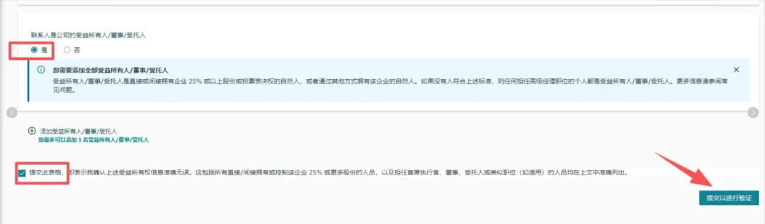 一些验证步骤:点击重新激活,然后确认公司、法人信息没问题就可以提交,有的可能会要求提供账单地址证明。
