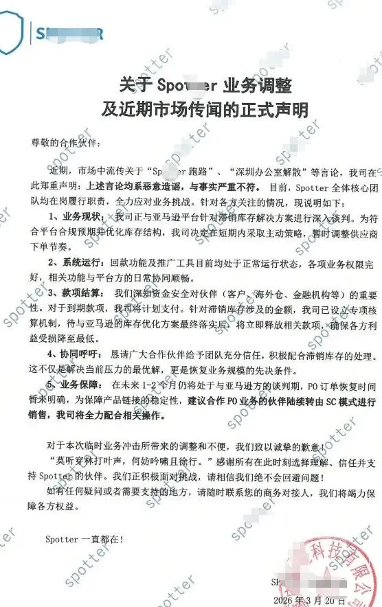 尽管官方连夜发声明辟谣,说核心团队都在正常上班,可声明里一句“库存严重滞销、PO订单恢复待定”;仍让数百位相关卖家焦虑不已。