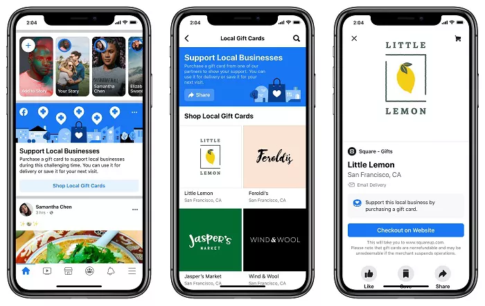 24.1亿+月活跃人数 Facebook是世界上第三大最多人访问的网页 Facebook Stories快拍每天使用用户量达3亿 52%的美国成年人把Facebook作为新闻资讯来源 74%的Facebook用户每天都会登录使用 Facebook用户每天平均在Facebook上会花38分钟 发布指南“疫情期品牌如何保持与受众的联系” 前两天Facebook发布了洋洋洒洒64页纸的指南,期望帮助品牌能在海外疫情大爆发期间利用Facebook和Instagram平台与品牌受众保持互动。 (英文原文文件下载,点击“阅读原文”) 指南介绍了4大沟通要点: 关心照顾(关注自己和身边人的健康安全) 分享正能量(保持乐观,用真诚感染社区氛围) 回馈(鼓励和奉献力量给防疫抗疫的人们) 创意(尝试用自己的创造力帮助更多的人) 还介绍了几大内容要点: 互动性(要记得及时回复粉丝给你的评论,尝试去评论别的账号内容激发更多互动,还可以和不同的账号“结盟”来扩大信息传播度) 相关性(可以在贴文/Stories快拍里使用热门#话题标签, 或使用更清晰的标题或描述来优化自己的话题搜索,同时还能@与内容相关的用户/地点等) 原创性(避免从别的账号大量转发非原创内容,会显得首页不专业且信息过载) 连贯性(发布贴文或开启直播来召集受众要制定固定时段。让受众对你的账号;在大事件发生的时候及时更新;同时贴文可以尝试图片/视频/动图等多种形式,保持和受众的紧密联系和积极对话) 加深受众印象(可以在IGTV或Facebook平台发布原创的3分钟+长视频,为受众提供更多“记忆素材”) 同时,Facebook还针对旗下不同产品提供了更细节的内容建议和形式建议,就连主题、素材、运用什么创意都提供了建议~ 快打开原文看看吧! 上线新模板,为各品牌“迎战”COVID-19助力 近日Facebook官方称,深知疫情对许多企业带来的打击和挑战,因此Facebook希望能通过一些更新和上线为品牌在线上提供更多支持。 新上线的模板简洁便捷,便于用户在浏览贴文时一键购买,还提供礼品卡/折扣券展示位等。 同时,Facebook还为品牌提供“自动应答”技术支持,在疫情期各品牌在办公和人员调配上多有不便,Facebook“自动应答”的支持可以让品牌在其旗下社交产品上和用户保持紧密联系,同时“自动应答”还能应用在品牌进行直播的时候,非常方便! 新增礼品卡搜寻服务,助疫情受影响中小品牌 本月Facebook不仅详细介绍了其投入1亿美金,覆盖30个国家的小型企业资助计划,还上线一系列功能和服务为中小企业提供更多线上支持。 其中一个值得介绍的新功能就是“礼品卡搜寻”功能 用户可以在上图所示的Facebook专门页面里搜寻自己所需的品牌礼品卡,并可以通过列表点进品牌所属功能菜单。疫情之下许多品牌的门店都无法开张,这个功能可以让品牌受众直接在线上支持自己喜欢/所需品牌,购买礼品卡。 不仅如此,Facebook为企业主开启募捐功能,品牌们还能通过Facebook平台向自己的粉丝顾客寻求帮助,共同度过疫情难关。 更新有趣贴纸,增加线上互动乐趣 疫情期的社交媒体更是人们解闷、联系亲友的日常必备。Facebook近期马不停蹄更新了一些系列聊天/贴文/Stories快拍内可用的贴纸滤镜,为用户和品牌带来更多新鲜感~ 还记得之前刷屏、让大家疯狂制作自己卡通化身的Zepeto吗?最近Facebook也在澳洲上线同样以用户自己为模板创意制造的的Avatars卡通表情包。 Facebook称希望这款新表情包可以让用户在线上聊天时更好地表达自己,为用户提供更有趣的聊天体验。 同时,针对疫情Facebook还上线了“笑脸拥抱爱心”,在Messenger上线“跳动的紫色心”等表情包,传递爱和温暖~ 更新“Community Help社区帮助”功能 4年前就诞生的“社区帮助”功能在每次天灾人祸时都会启动,为有需要帮助的人提供求助渠道,为乐于帮助的人提供信息渠道。此功能分地区使用,以美国为例,用户使用这一功能可以向80公里内的人求助/提供帮助。 Facebook表示往后也会长期保留这一功能,有需要的时候就会启动,为不同地区的当地社区提供更有效便捷的线上帮助。