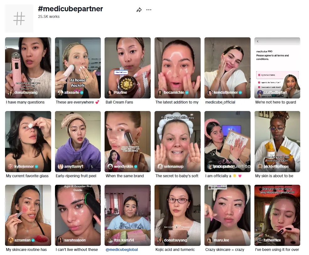 Medicube 的海外营销并未依赖单一头部大 V,而是构建了覆盖头部明星、垂类达人、KOC 的多层级红人矩阵,通过不同平台、不同形式的协同发力,形成持续叠加的传播效应,实现品牌声量与用户信任度的双重提升。