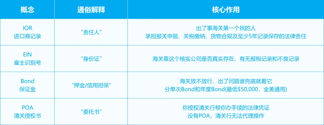 这三者必须“对齐”:同一个主体 + 自己的EIN + 自己名下的Bond + 清晰的POA授权 = 海关眼中的“真实进口商”。