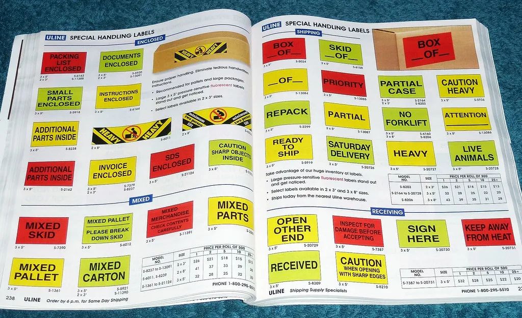 只要仓库型的办公室需要的,没有ULINE想不到的,几乎所有的他们都可以供应。其实价格比起很多供应商,他们并不算便宜。但是,仔细看上面目录最后一个封面,Order By 6PM For Same Day Shipping,就是在下班前傍晚六点前下的单,他们都可以保证当天发送出来,而且他们的仓库在整个北美非常齐备,常常第二天上班没多久他们的东西就送到了,对仓库管理中,是非常省心的一个供应商,更是一个非常及企业所及的供应商。