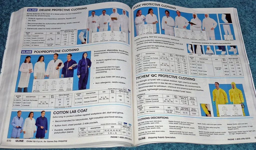 在仓库型办公室上班的人午饭后休息片刻的时候,常常居然在翻的居然就是这个著名的ULINE的产品目录。里面详细记录了各种的产品型号,产品规格,还有价格及这个产品的应用场景。因为有着近800页的内容,只要有用开这家公司的目录,都会一次次地不断采购他们供应的产品。