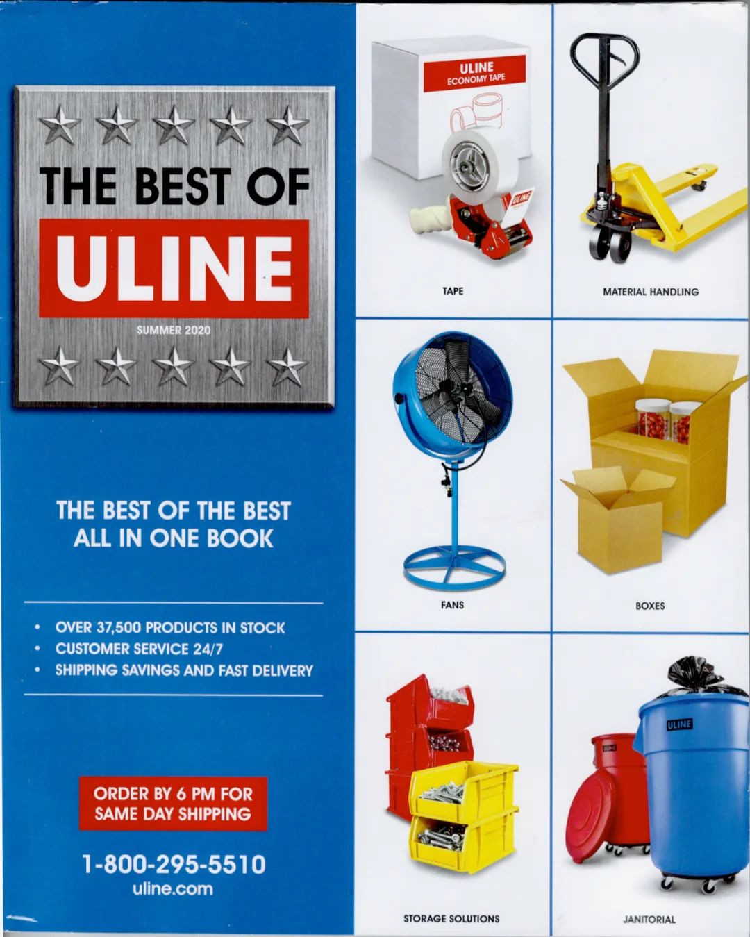 ULINE创办于1980年,从一个地下室开始创业。发展至今,截至2020年2月,公司报告拥有超过6,700名员工,收入超过58亿美元。这家公司非常传统和保守,公司要求男士戴领带;不鼓励纹身。据信这家公司没有通讯部门,并在社交媒体上保持非常的低调,但确实又在网上广泛刊登广告。ULINE这家公司非常重视产品目录,至今目录超过780页,每年给全北美各种在经营的仓库型办公室邮寄两次,被公司视为其营销的重要组成部分。这是暂时没有买过他们产品的公司,一旦买了一次,几乎每个月你的仓库型办公室每个月都会收到他们的产品目录。