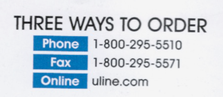 仔细看最新一本,也就是写这篇文章的当天我收到最新一本ULINE的封底关于如何在ULINE下单的三种方式:(1)800免费咨询电话;(2)传真;(3)在ULINE的网上。电话下单一直也是让ULINE保持了收入超过58亿美元的关键之一,其次,传统的传真机居然是一个非常重要的方式。最后才是在线PC端和APP端的下单。