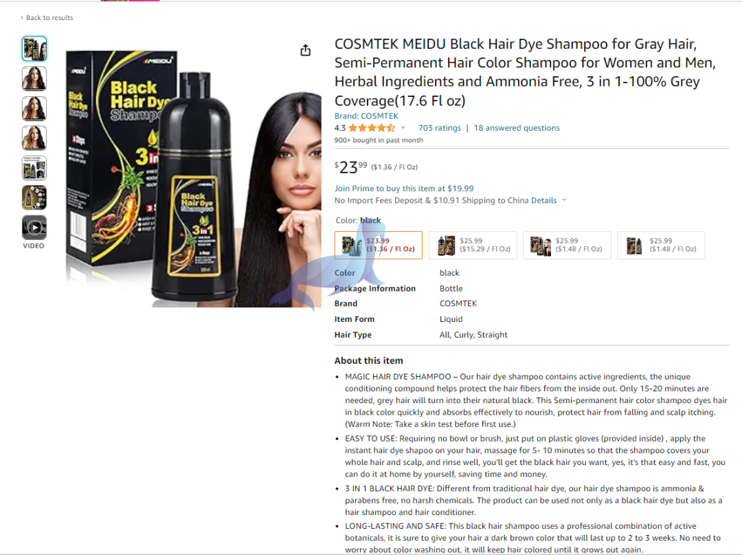 原告品牌:Meidu 染发剂