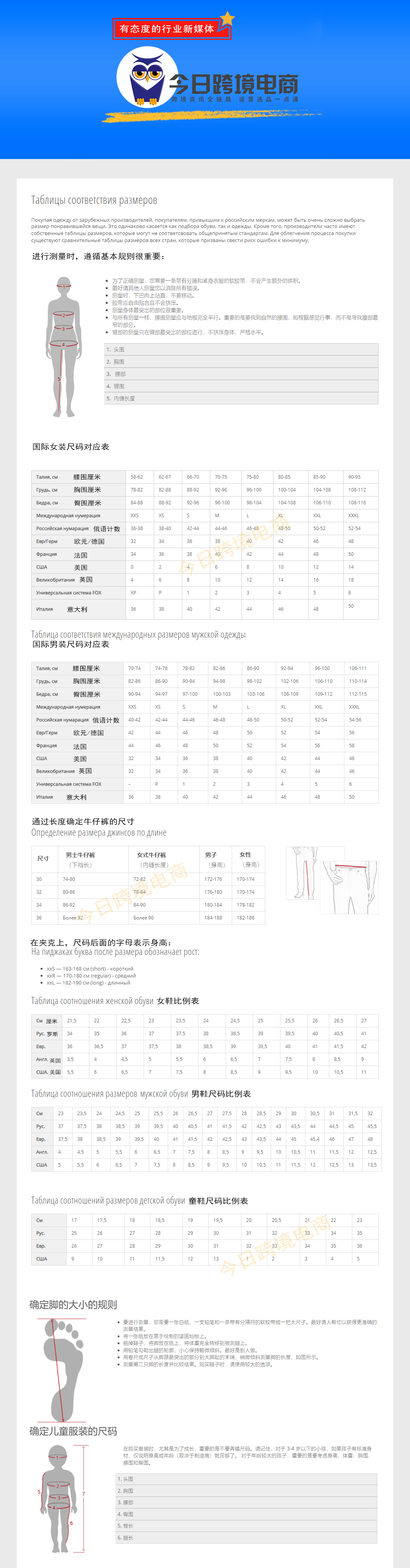 从事跨境电商行业的卖家,不仅需要了解平台的规则,更要知悉本土的生活习惯。像俄罗斯国家对尺码的定义,和我们中国就有很大的区别。