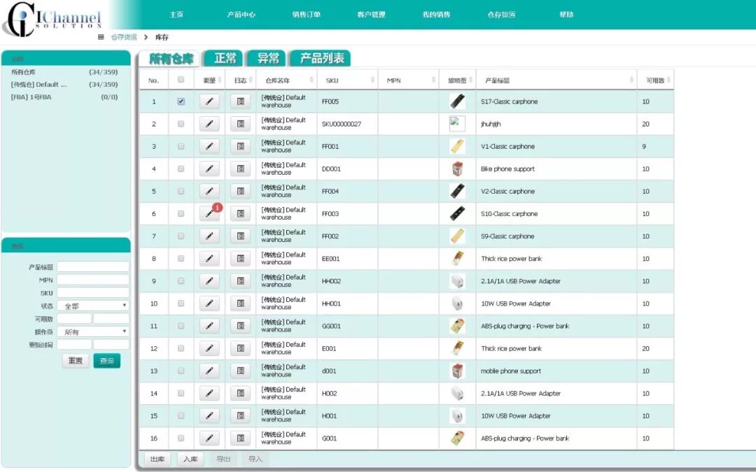 1、在仓存货运栏目选择库存,然后选择产品列表,勾选需要入库FBA的SKU点击出库