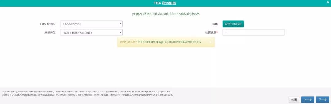 9、生成FBA纸箱面单,粘贴在包装箱面