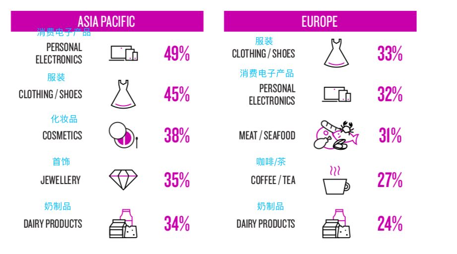 亚太和欧洲地区消费者最愿意购买的品类