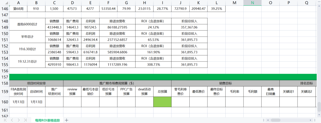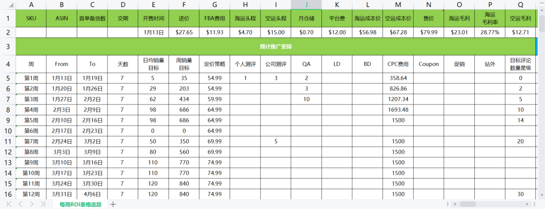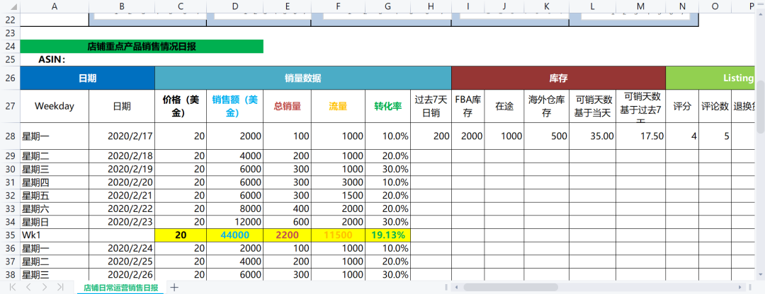 亚马逊店铺营销及日常管理多维自动化统计表与每周ROI自动化追踪表格