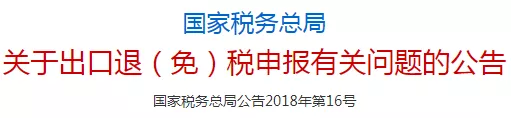 官方公告:国家税务总局4月19日发布的《关于出口退(免)税申报有关问题的公告》(国家税务总局公告2018年第16号) 地址:http://www.chinatax.gov.cn/n810341/n810755/c3411502/content.html