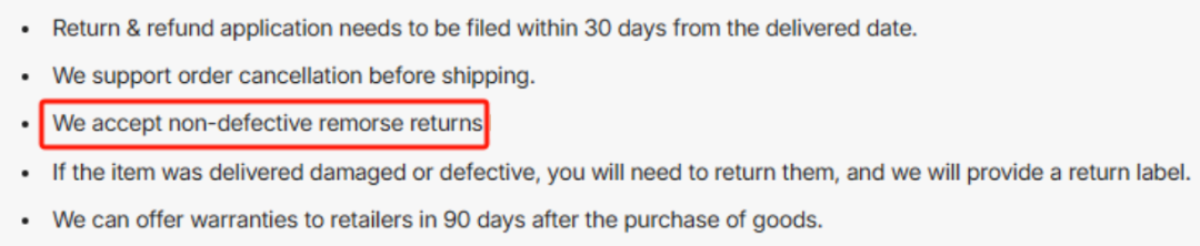相比之下,一些具备完善退货政策的分销平台,就在这方面给卖家多了一层保险。