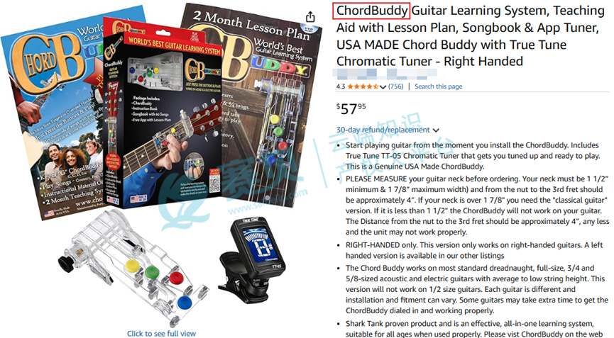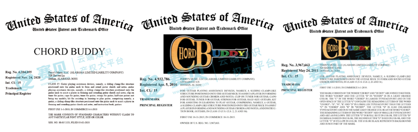 本案涉及 “CHORD BUDDY” 系列商标,如注册号为 3967663、4932786、6204055的商标,这些商标用于吉他辅助设备等产品,不可以轻易使用在产品的标题、包装上,否则会有侵权风险。