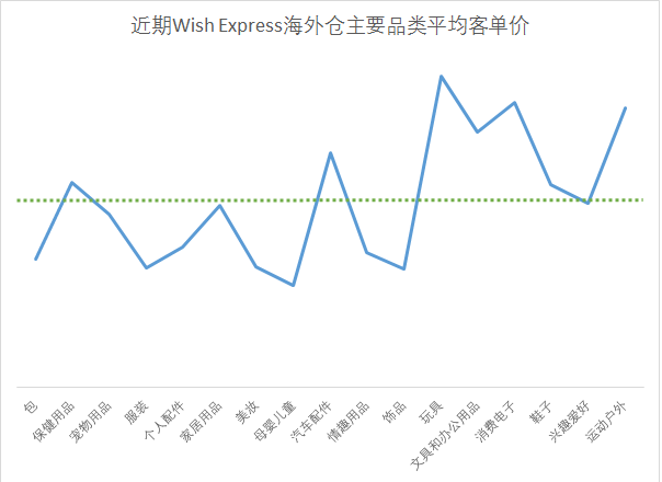 玩具、消费电子、户外运动、办公用品、汽车配件、保健用品、鞋子等品类的平均客单价高于WE海外仓的整体平均客单价;