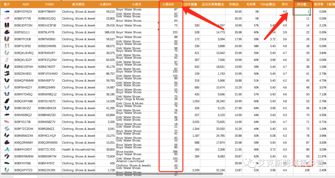 我们将top100内的产品中review数量较少的asin整理出来,这些产品说明他们在较少数量的review的基础上,却进入了best seller,这更能表现出来这些竞争对手销售能力,当然还要结合你的产品的具体排名,如果这些评论很少的产品排名没有你的top排名高,那么你就可以不选择他们。