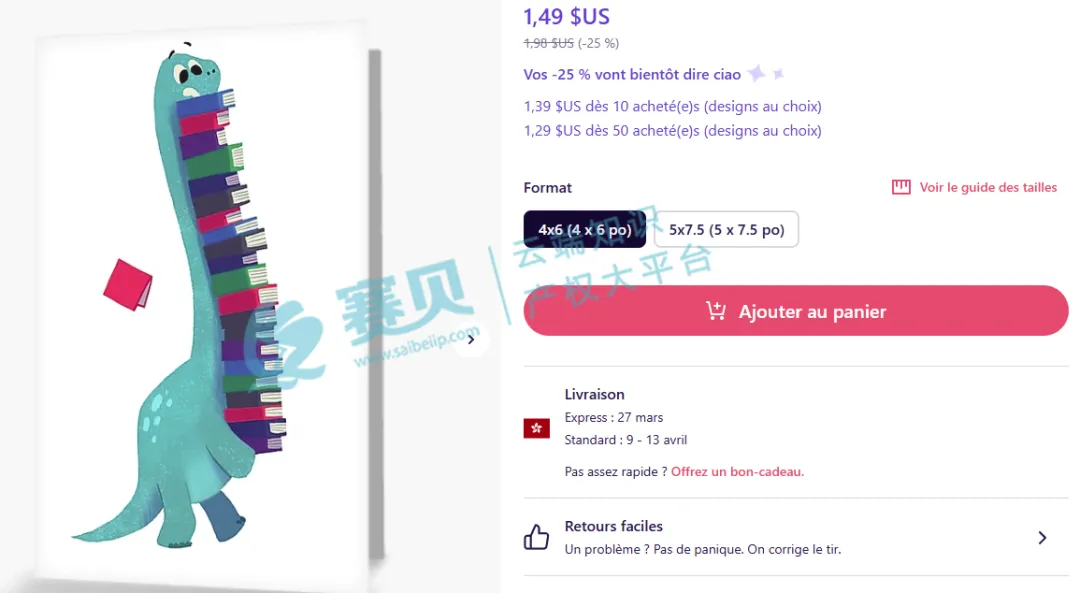 本案核心涉案标的为两项美国注册版权,标题是恐龙书籍,均由原告Bonnie Hong Yi Pang所有,赛贝提醒跨境卖家,未经授权不得擅自使用,以免引发侵权风险。