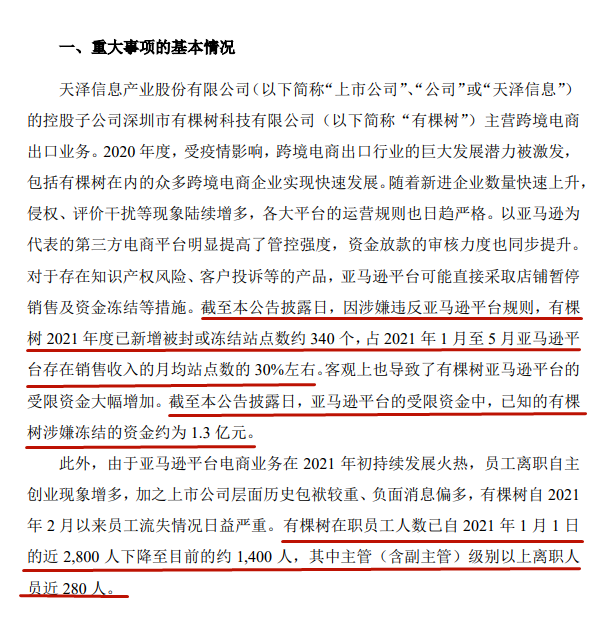 有棵树亚马逊平台的受限资金因此大幅增加,
