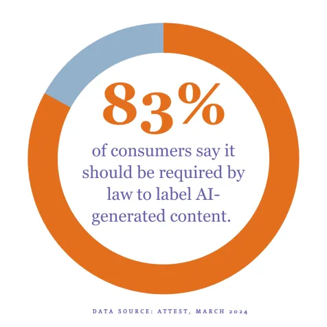 根据quirks公司公开数据,超过71%的消费者承认,由于人工智能的存在,他们担心自己所见所闻的可信度。这个问题非常严重,近83%的消费者认为应该立法强制要求对人工智能生成的内容进行标注。