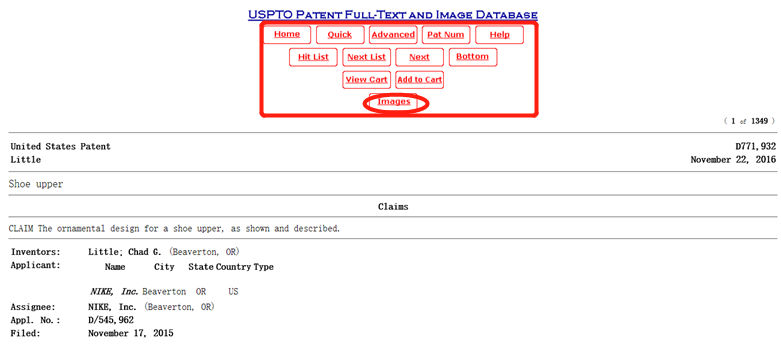 点开图片部分,我们就能看到关于产品的专利的部分了,一般来说,虚线的部分是不受专利保护的,毕竟鞋子也都长得差不多,如果对整个鞋子进行专利划分,那别人家就别想再干了。所以被保护的只有具有设计性的那一部分,我们只需要避开这一部分就可以完美避开外观侵权啦!