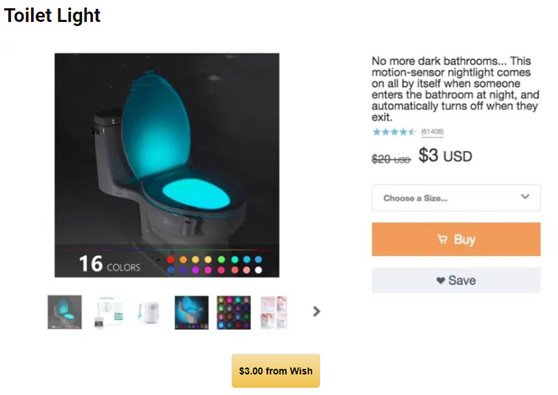 对于厌倦了上厕所开灯的人们,可以花3美元买个自动感应的马桶灯,装在马桶边上,你需要的时候它就会亮起来,非常方便。