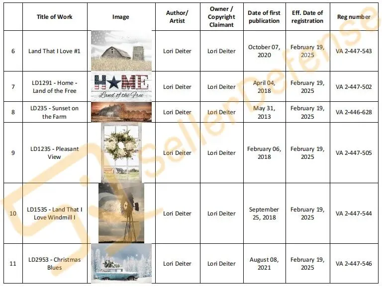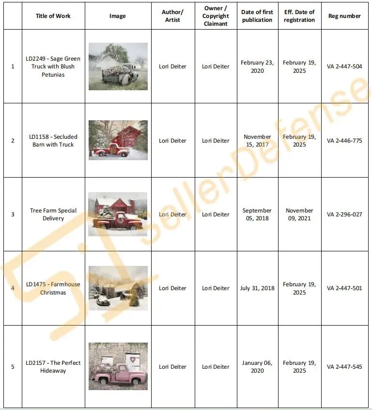 原告 Lori Deiter 是一位画家和创作者,她热爱家居装饰、墙面彩绘、制作珠宝以及翻新家具和橱柜。她精通摄影、水彩画、丙烯画、钢笔画以及使用石膏、金属和木材进行三维绘画。