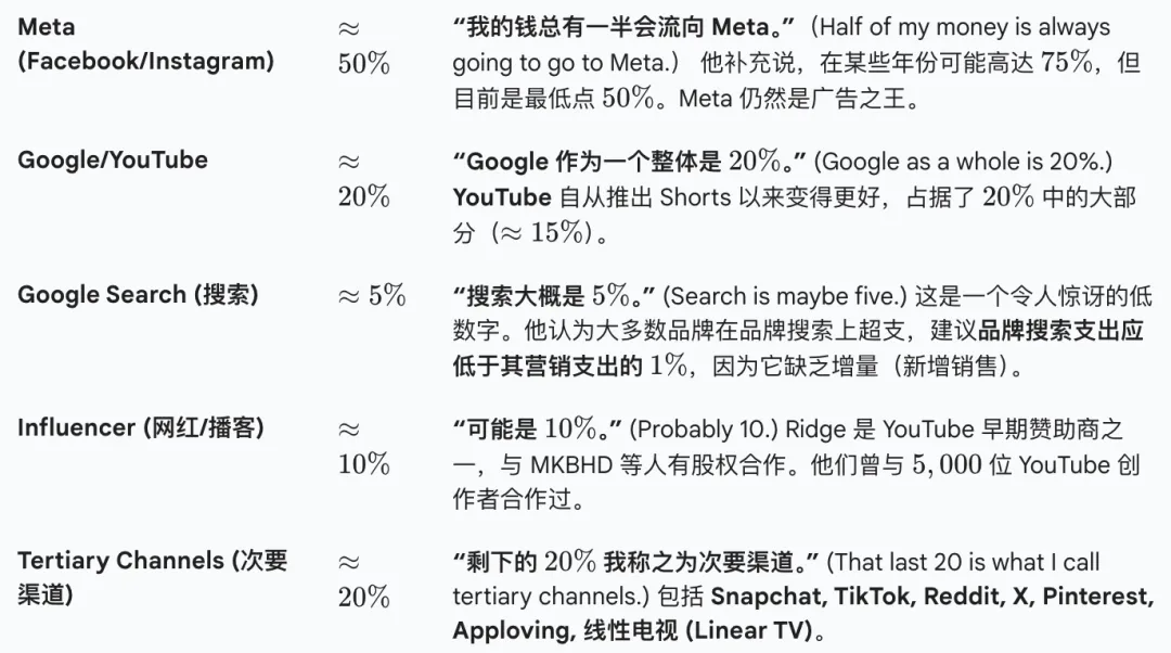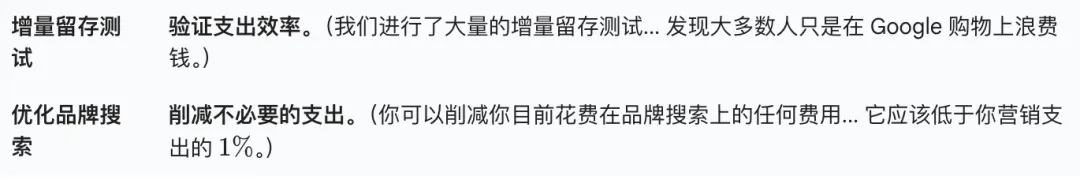 而对于传统的 Google品牌搜索和Google Shopping,他的观点是要严格控制并大幅削减预算,因为它在先进的归因框架(如增量测试)下被证明效率低下。