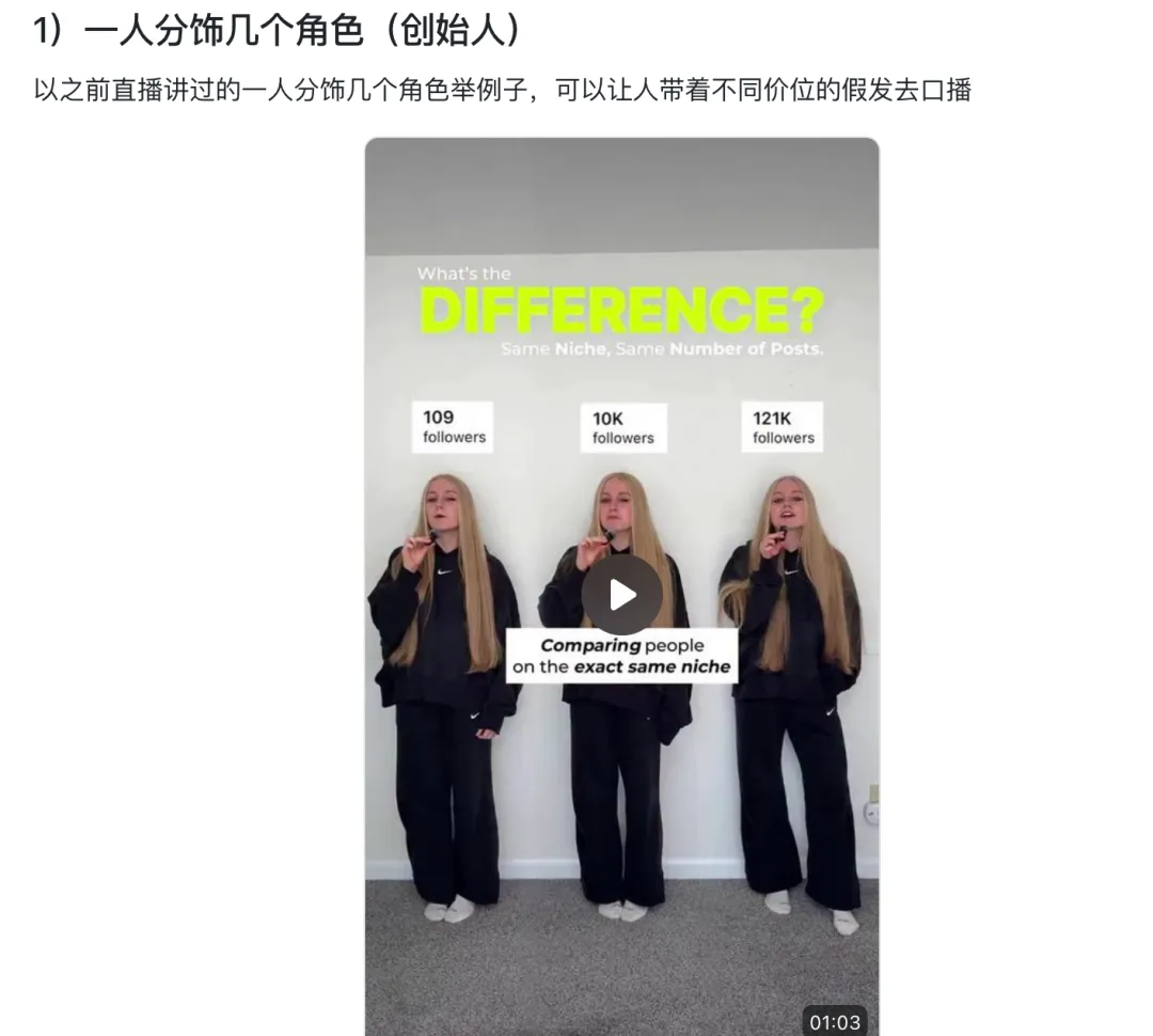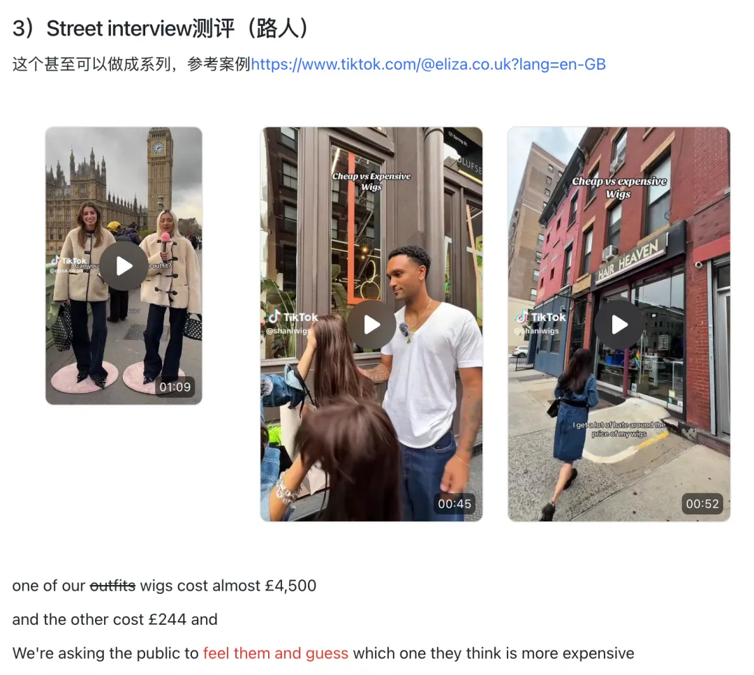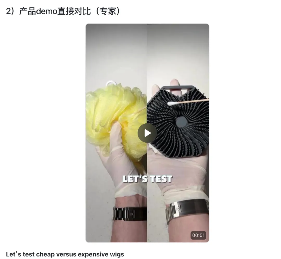 其实就是变化视频的形式,举个例子,当我们测试出来“不同假发的价格/差异点”这种Them VS US这种视频形式容易出单,我们可以做出不同类型的视频: