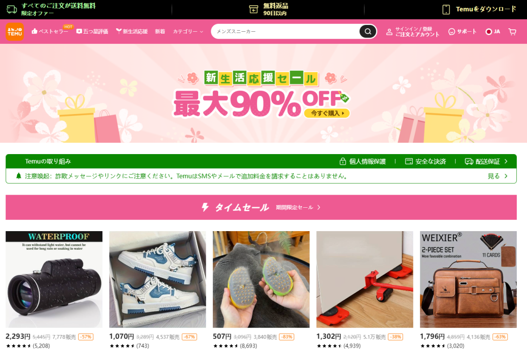 此外,Temu在日本提供免费的标准运输服务,订单通常在5到9天内送达。