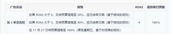 周末和活动日设置预算调整,ROAS达到预设目标时预算按照比例增加;