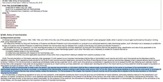 “引入《美国法典》第19标题第1484节 第(a)(2)(B)条款原文: