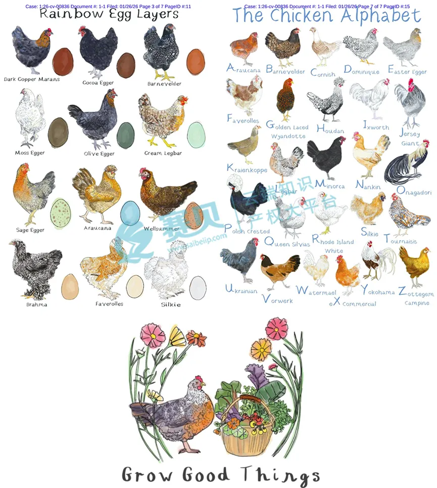 【26-cv-836】Keith律所代理3张乡村鸡信息图作品版权TRO维权,部分涉嫌侵权跨境电商卖家已被取证,尽快下架商品,减少损失!