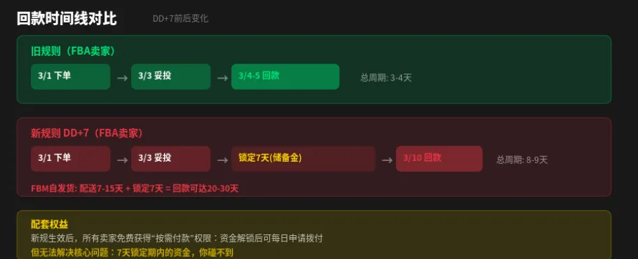 包括 DD+7、FBA 贴标服务取消、变体新规收紧,整个逻辑是一致的: