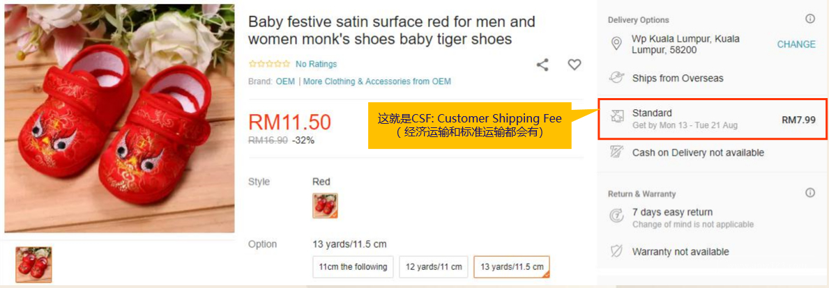 • CSF 全称Customer Shipping Fee,在产品页面展示的,买家需要支付的末端运费