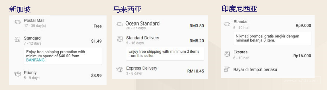 • 如果卖家设置了“包邮促销”,CSF的位置会显示”包邮“