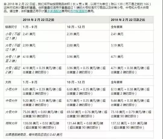 新费用将于2017年2月22日或之后生效。其中,对于售价为300美元或以上的标准尺寸商品,亚马逊将取消其享受的免费配送折扣。亚马逊将根据商品尺寸分段收取相应的费用。