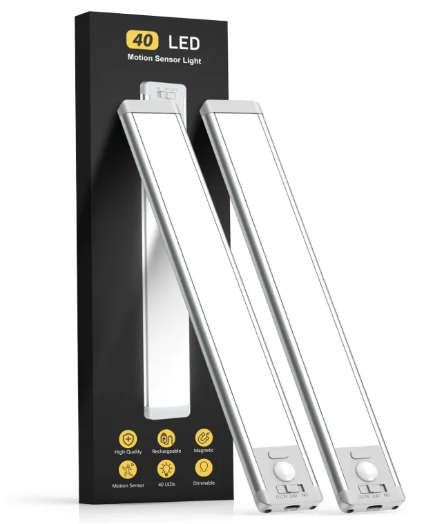 产品介绍:这款磁吸照明灯采用升级版人体感应技术,可在120°视角、10英尺范围内于弱光环境自动亮灯,并在20秒无人活动后自动熄灭。除了感应模式,还可切换为常亮或关闭,以适应阅读、户外露营等长时间照明需求。产品搭载40颗节能LED灯珠并采用防眩光罩,支持五档亮度调节,可在夜间作为柔和的小夜灯,也能在厨房中提供更强的工作照明。内置1800mAh电池并支持USB-C充电,在感应模式下可使用7至45天,常亮高亮状态下可持续照明约8小时。灯体背部带有强力磁铁,可直接吸附于铁质表面,也可通过随附金属片安装在任意位置,适合厨房、衣柜、走廊到书架等多种场景,并可随时取下充电。