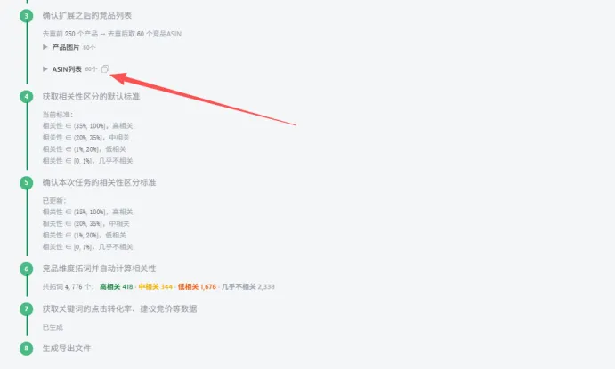 输入一个或者多个ASIN,先确定核心自然流量词,这里一定要确认好,这会影响ai识别下一步竞品的准确性