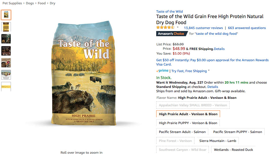 紧随其后的则是来自品牌Taste of the Wild的干狗粮,该产品在上周四度跻身Best Sellers榜单第二,平均排名4.00;