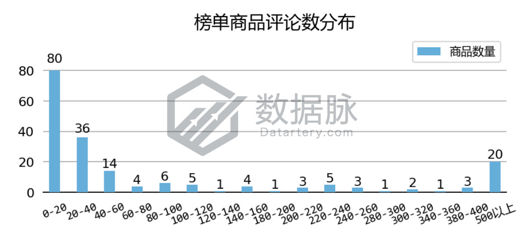 在上周登榜 Pet Supplies 品类 Hot New Releases 榜单的商品中, 单个商品拥有的最大评论数为8783.00条,最小评论数为0.00条,平均评论数298.47条,评论平均星级4.48星。 其中,42.33%的上榜商品评论数不超过20条,另有19.05%的上榜商品评论数在20到40条之间,此外有20款上榜商品的评论数超过了500条,占上榜商品总数的10.58%。同时,骆探长(shujumai.com)发现,与前几期分析相比,该周进入榜单的商品整体平均评论数继续大幅上涨,具有一定评论积累的商品在Hot New Releases榜的竞争力进一步提升。