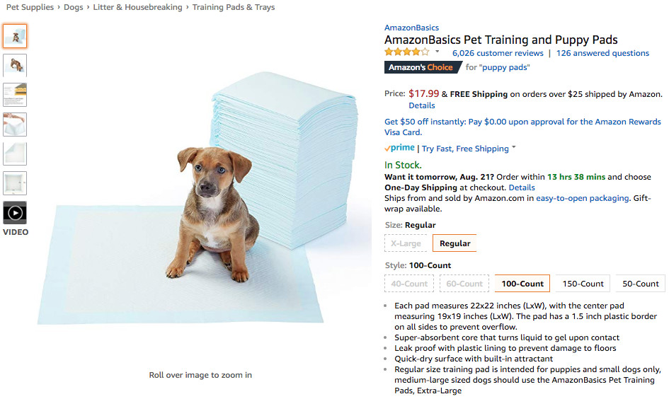 可以看到,在上周Pet Supplies品类的Best Seller榜单中, 几款老牌的榜单“熟面孔”再次返回榜单前列——其中,亚马逊自营品牌AmazonBasics的宠物狗尿垫产品“王者归来”,一周平均排名2.57,再次夺回综合排名榜首;