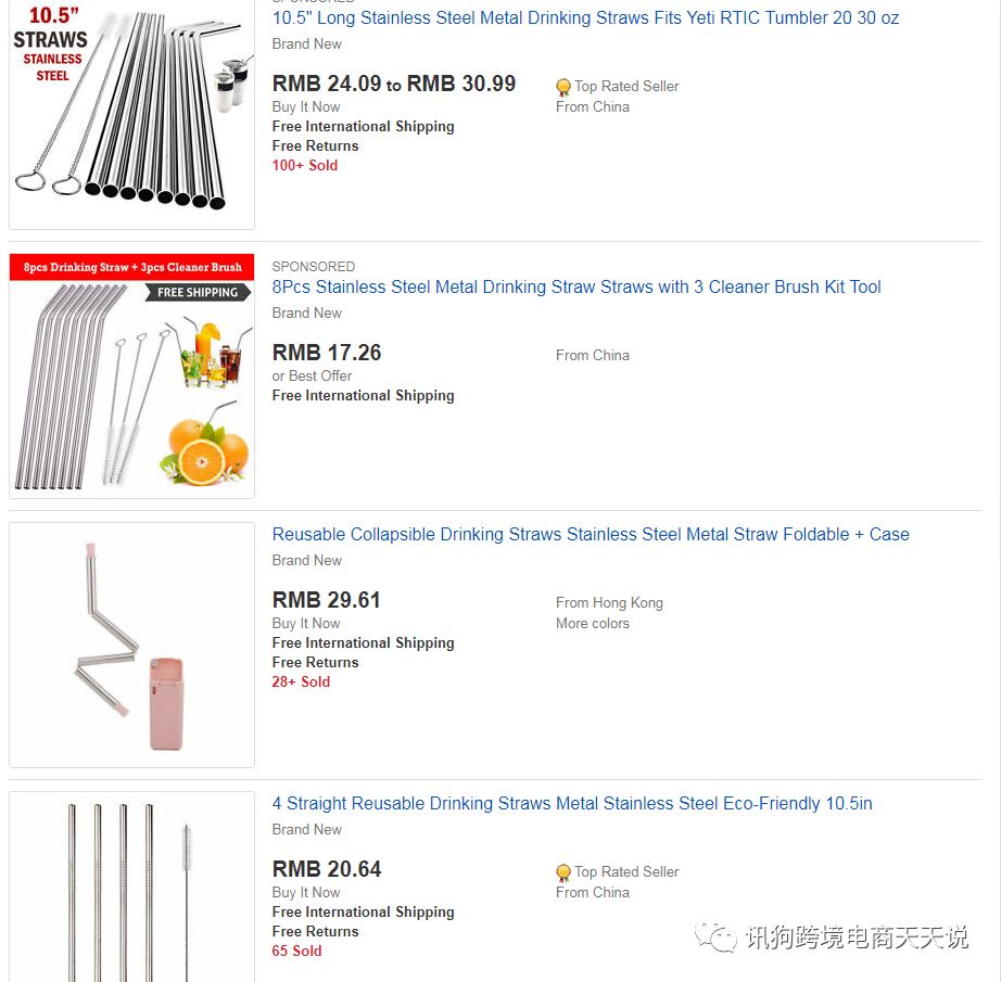 其实最开始我们发现金属吸管Metal Straw在ebay平台上的销量不错,