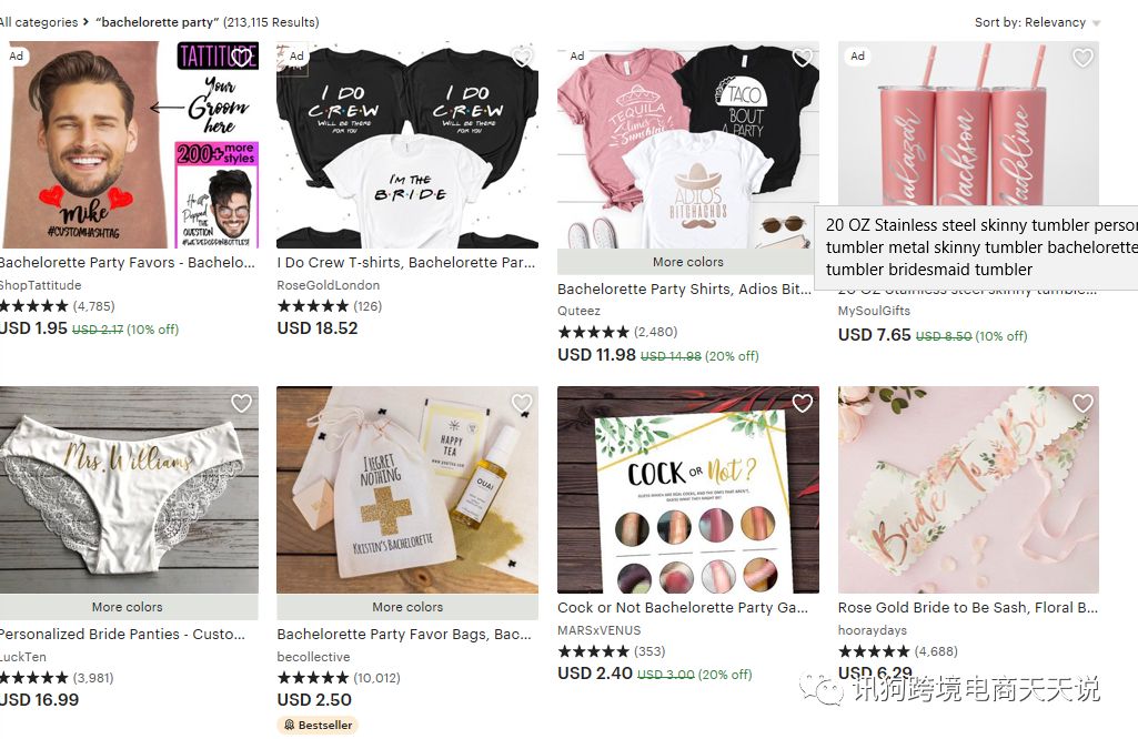 在etsy和ebay上搜索Bachelorette party,