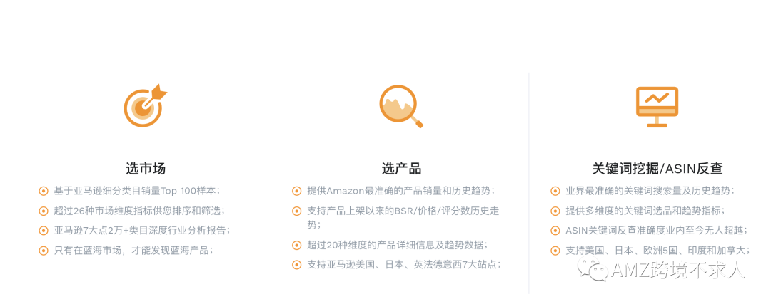 卖家精灵(SellerSprite)基于大数据和人工智能技术,为亚马逊跨境卖家提供一站式选品、市场分析、关键词优化、产品监控等软件工具,帮助亚马逊卖家发现蓝海市场,打造潜力爆款。