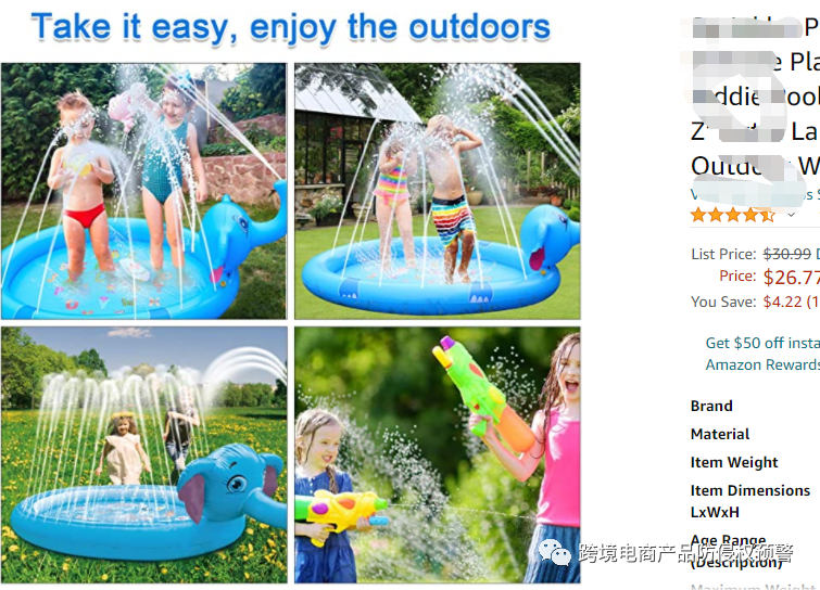 也有几家商家正在售卖同款的象形【喷水泳池】,见亚马逊美国站页面截图: