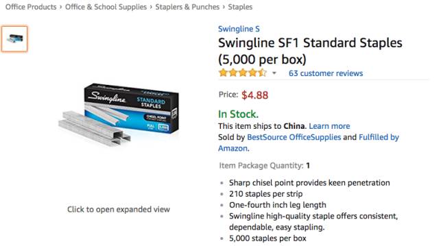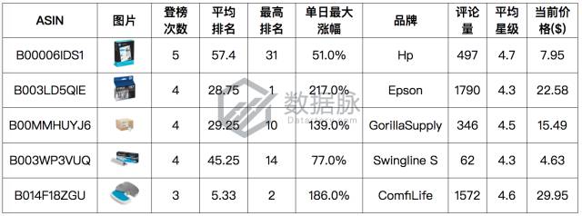此外,来自品牌GorillaSupply的卷纸产品与品牌为 Swingline S的订书钉产品同样在上周4次进入Movers & Shakers榜单,分别位列综合排名第三、四位。