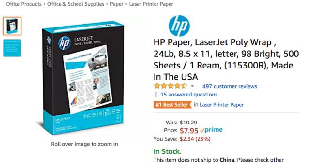 骆探长(shujumai.com)发现,在上周Office Products品类的Movers & Shakers榜单中,一款来自品牌Hp的复印纸成为了唯一在一周中进榜达5次的产品,位列综合排名首位。