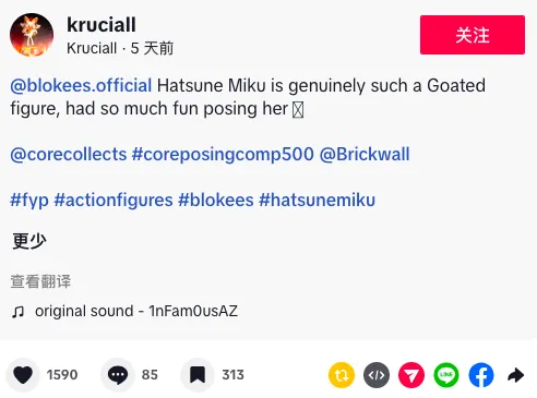 结果是,内容的创意源头被交给了社区。不同创作者用自己的方式“玩”模型,也在无形中扩展了品牌的内容边界。对海外用户来说,布鲁可不再只是一个品牌账号,而是一个不断被更新的内容标签。