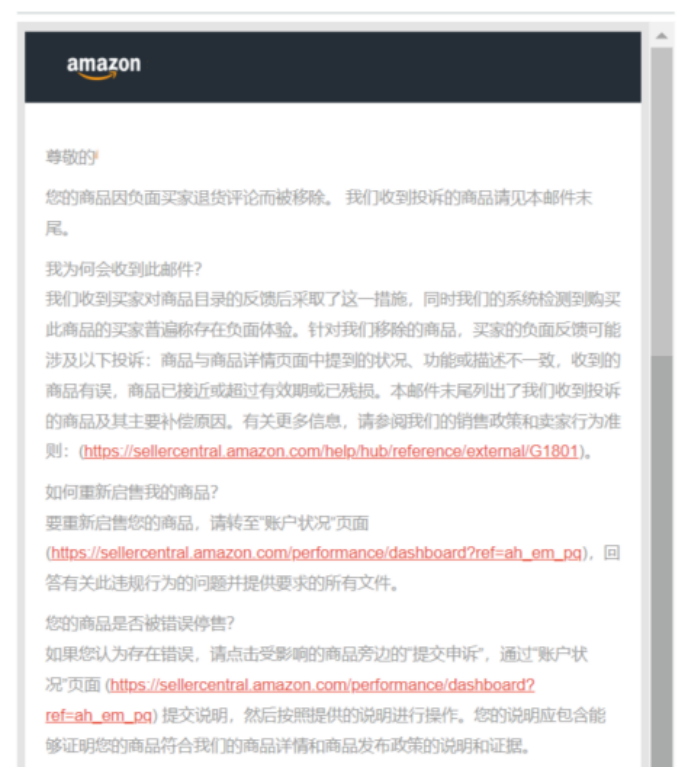 首先,仔细阅读卖家平台关于违规的绩效通知。根据邮件中的内容,找出具体的投诉原因;