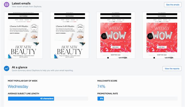 Mailcharts可以让你了解竞争对手的邮件营销策略,从邮件发送的频率到他们的标题创建策略等等。